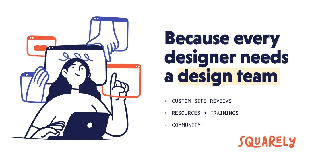 “If you love working for yourself, but would like a design team at your back, this one’s for you. Squarely Creative is where Squarespace designers come to level up their design skills, get expert feedback, and feel supported by a community that gets it. Members get short, actionable website reviews, fresh bite-size trainings + resources, and access to a supportive Slack community of design-obsessed friends. If you’ve ever wished you had someone to look over your site, help push your designs further, or keep you inspired week after week — you’ve found your people!”