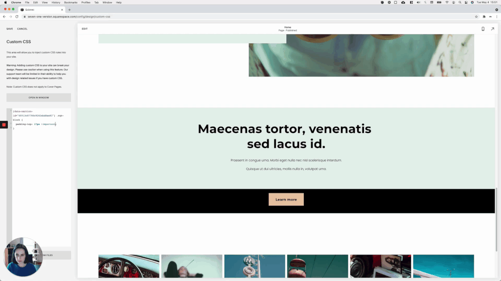 Fixing uneven spacing inside a narrow Squarespace section with one block